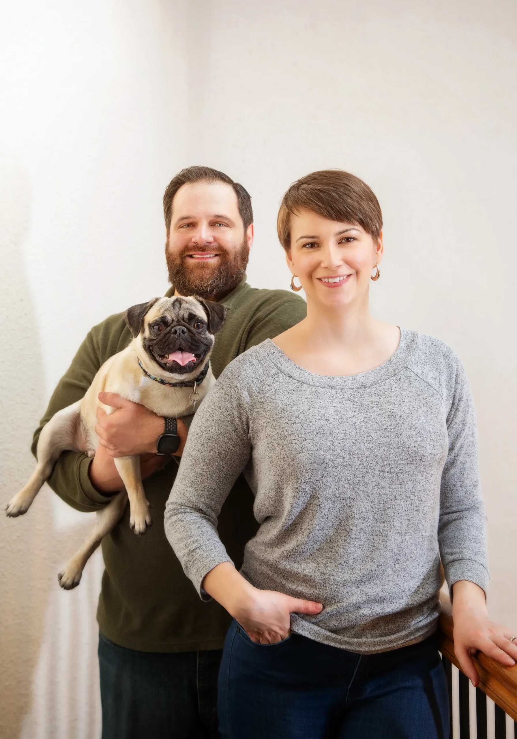 Katherine: I have three dogs and two cats. 2 dogs are half-pugs and half-Boston terriers. June is 10 years old and Kika is one-and-a-half years old. I have a one-year-old pug named Elon and a three-year-old Maine Coon named Zeus. I also have a rescue kitty; her name is Gigi and she is 12. My home is full of many animals and is like a little zoo!